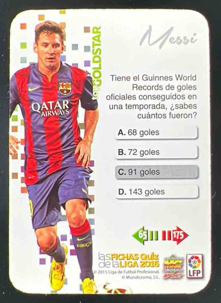 2015 Liga De Futbol Las Fichas Quiz Top Gold Star Lionel Messi