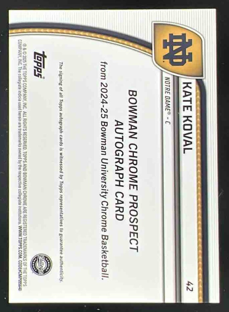 2024 Bowman University Chrome Autographs Gold Refractor #42 Kate Koval Auto /50