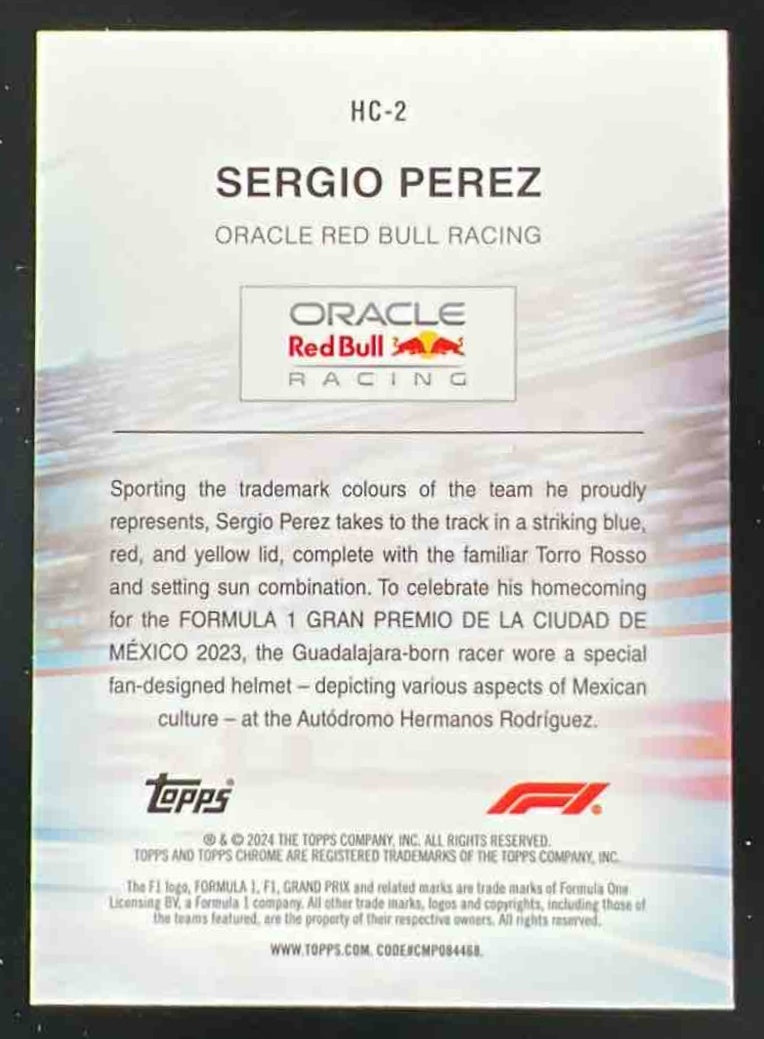 2024 Topps Chrome Sapphire Formula 1 Helmet Collection #HC-2 Sergio Perez