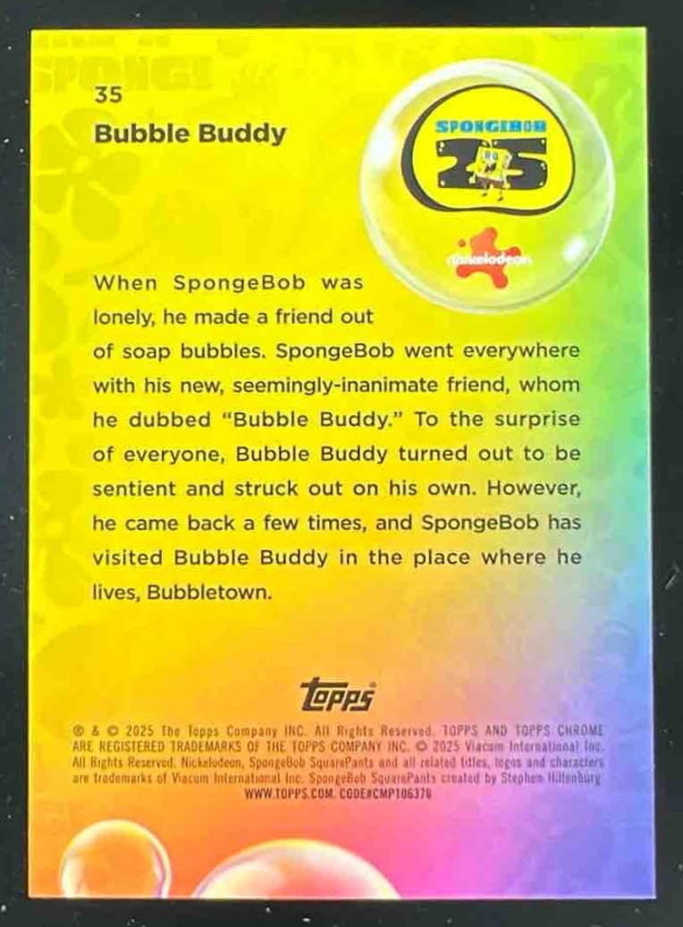 2025 Topps Chrome SpongeBob SquarePants BubbleFractor #35 Bubble Buddy /99