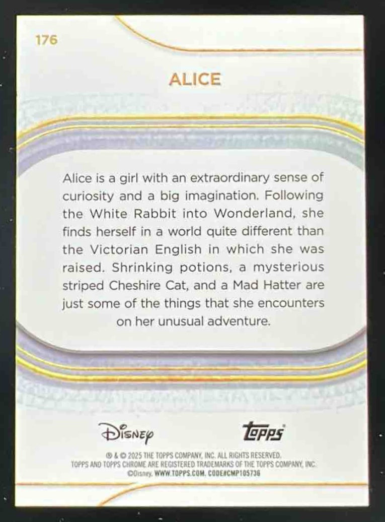 2025 Topps Chrome Disney Gold Wave Refractor #176 Alice /50