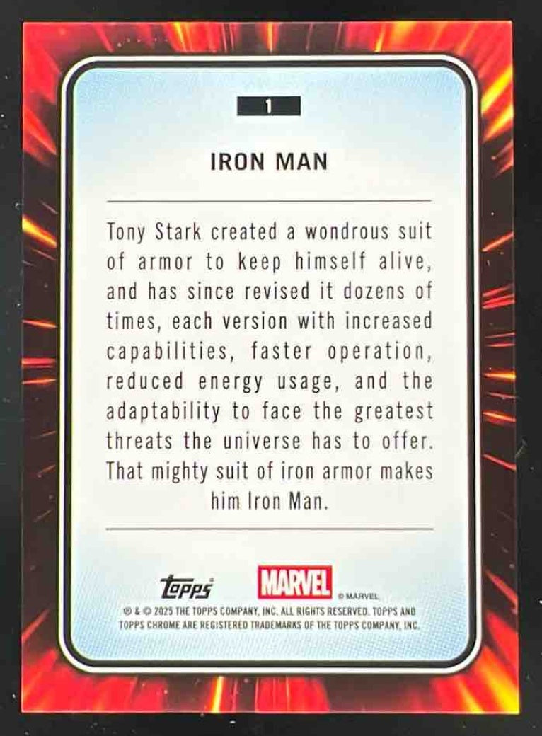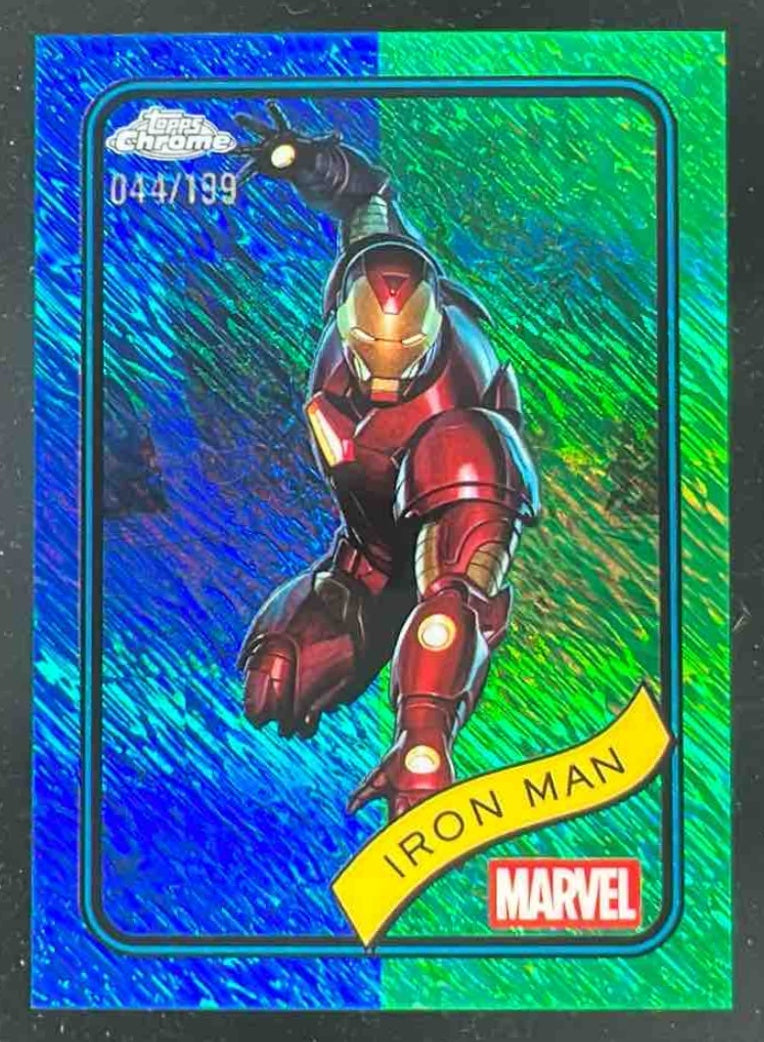 2025 Topps Chrome Marvel Blue & Green Shimmer Refractor #1 Iron Man /199