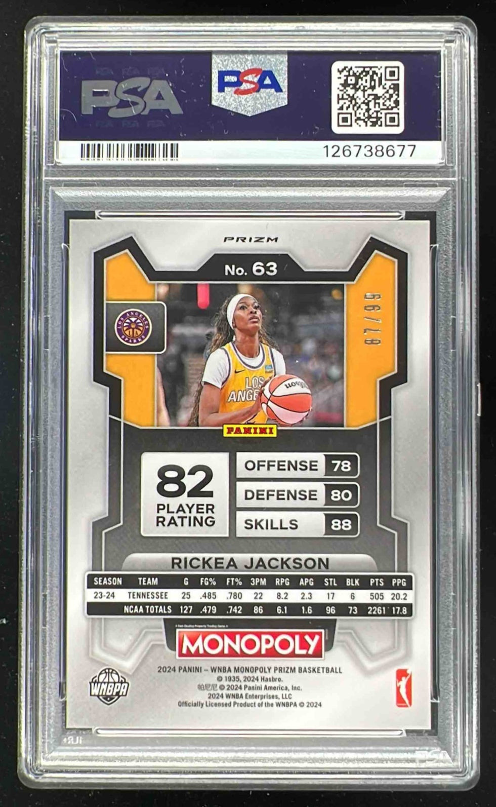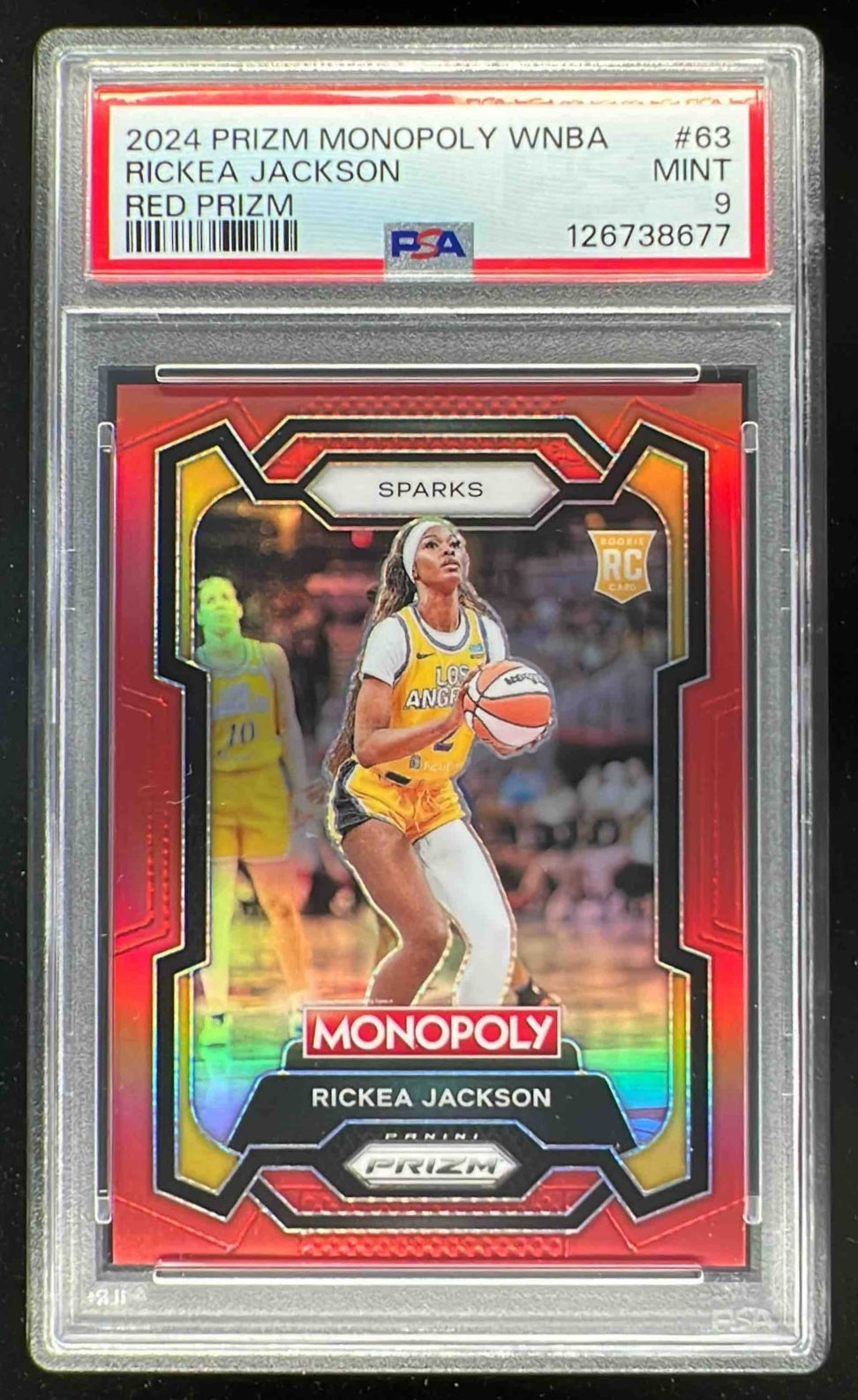 2024 Panini Prizm Monopoly WNBA Red Prizm #63 Rickea Jackson RC /99 PSA 9