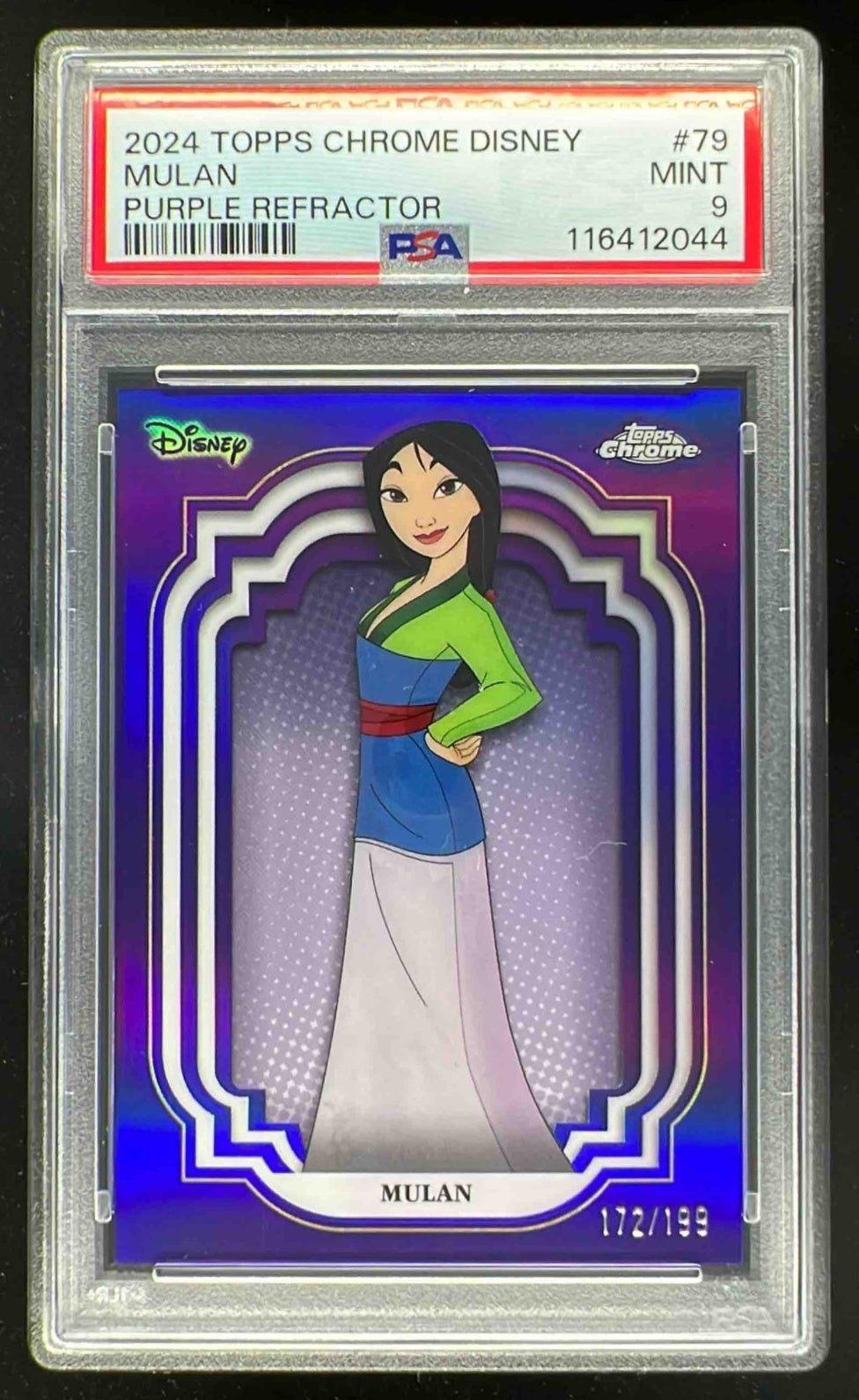 2024 Topps Chrome Disney Purple Refractor #79 Mulan /199 PSA 9