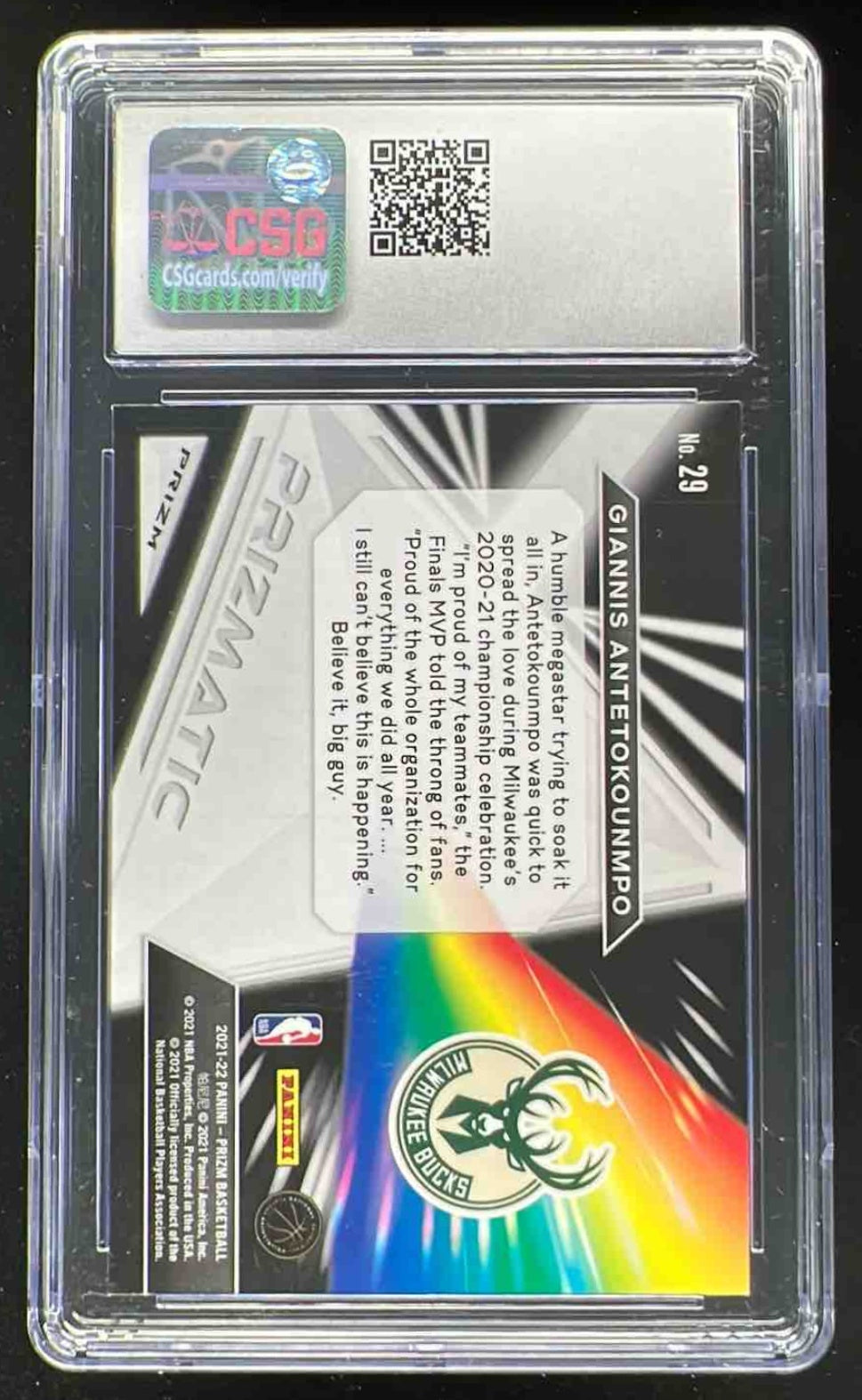 2021-22 Panini Prizm Prizmatic Prizms Silver #29 Giannis Antetokounmpo CSG 9