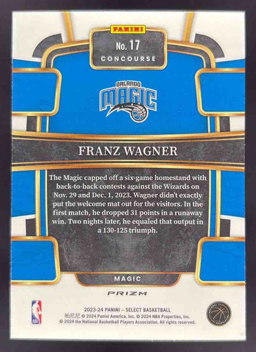 2023-24 Panini Select Tiger Prizms #17 Franz Wagner Concourse