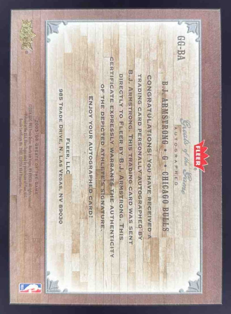 2005-06 Fleer Greats of the Game Autographs #GG-BA B.J. Armstrong Auto