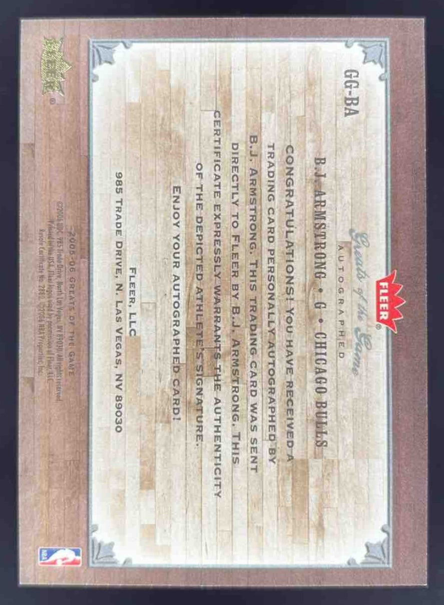2005-06 Fleer Greats of the Game Autographs #GG-BA B.J. Armstrong Auto