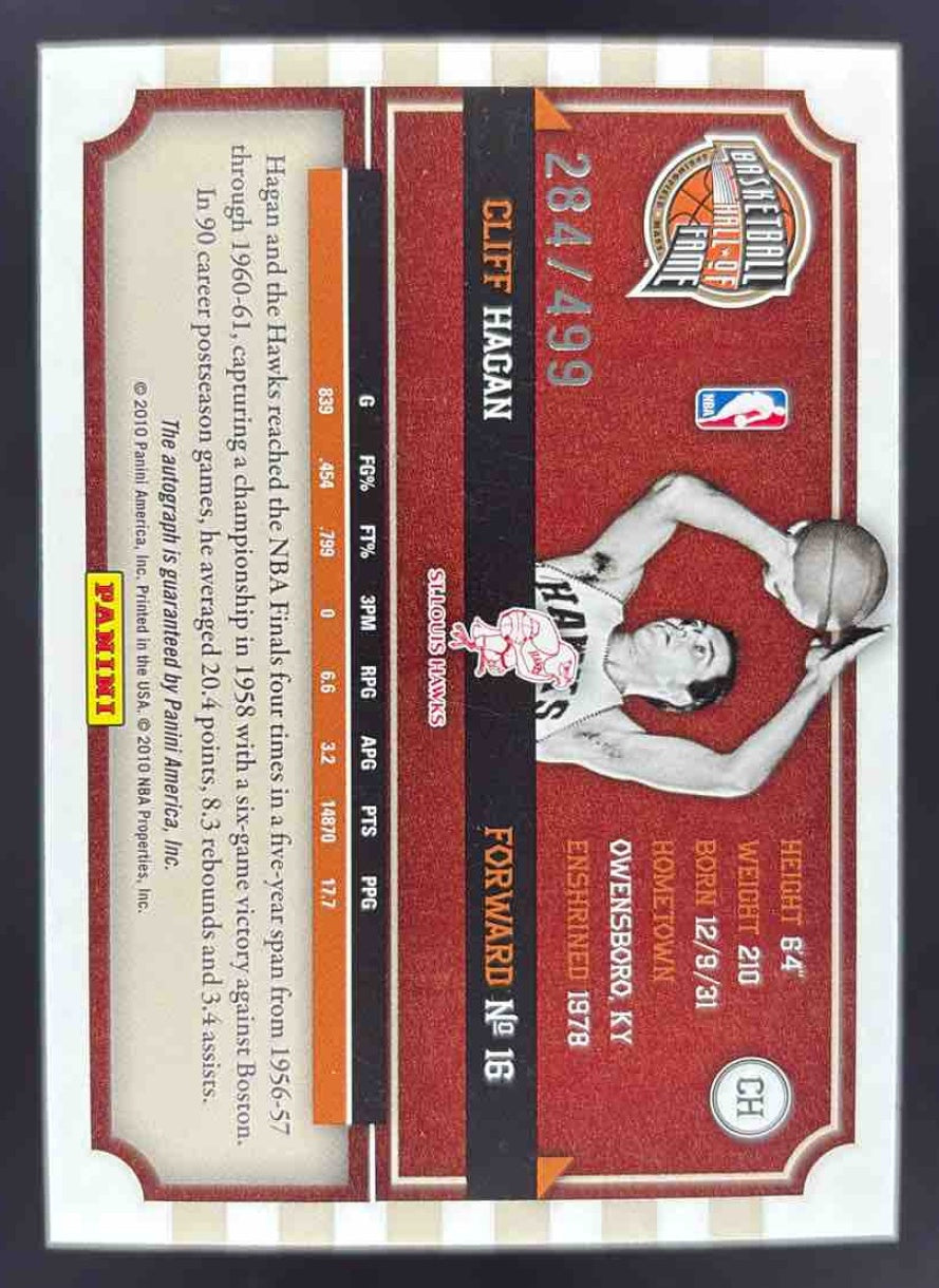 2010-11 Panini Hall of Fame Famed Signatures #CH Cliff Hagan Auto /499