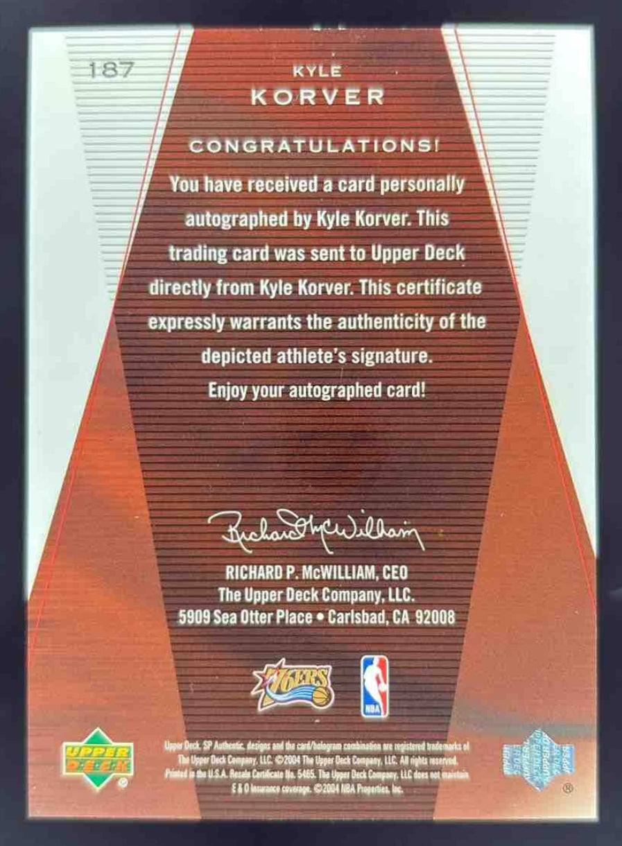 2003-04 SP Authentic #187 Kyle Korver Autograph RC Auto /1250