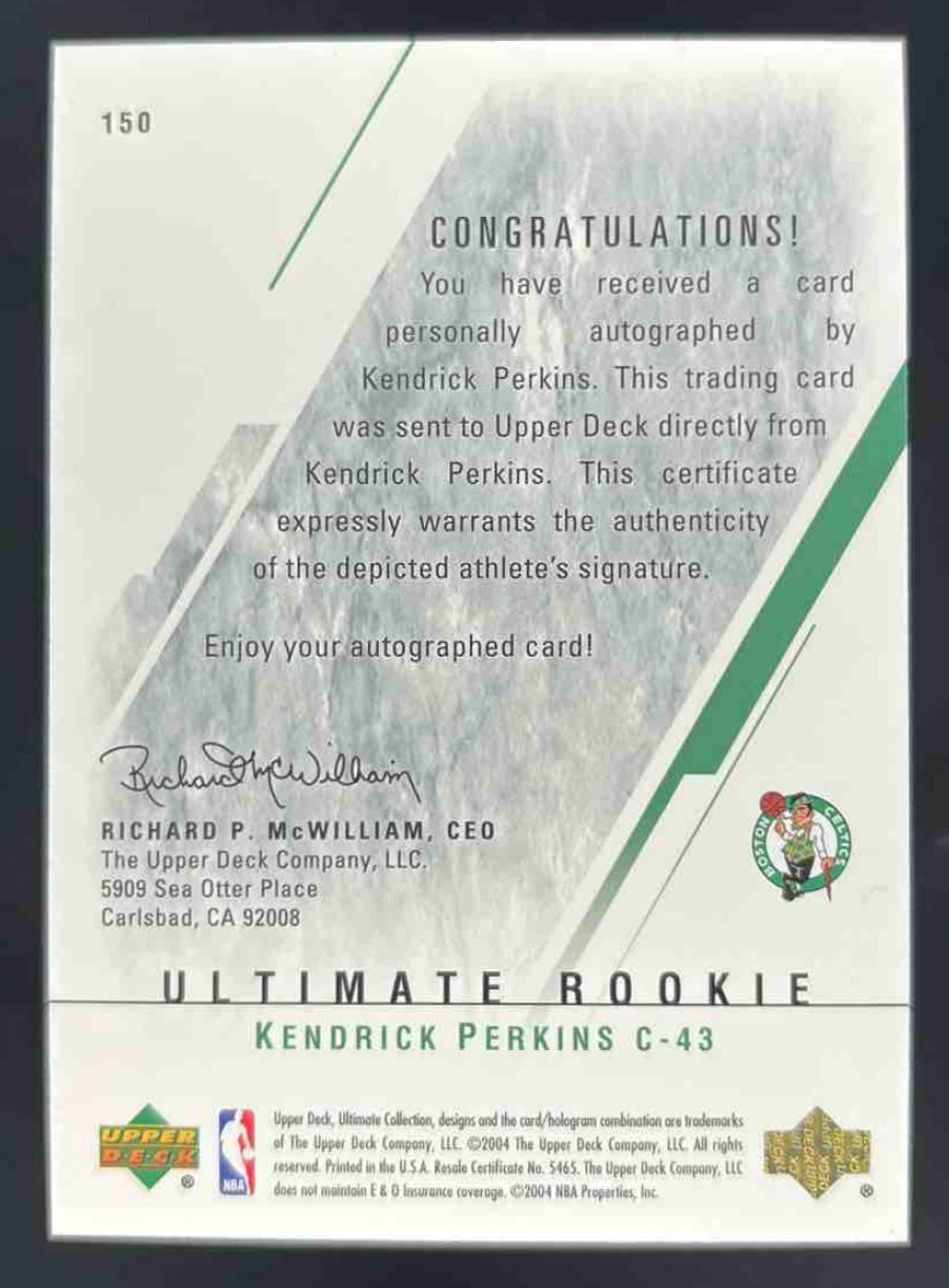 2003-04 Upper Deck Ultimate Collection #150 Kendrick Perkins RC Auto /250