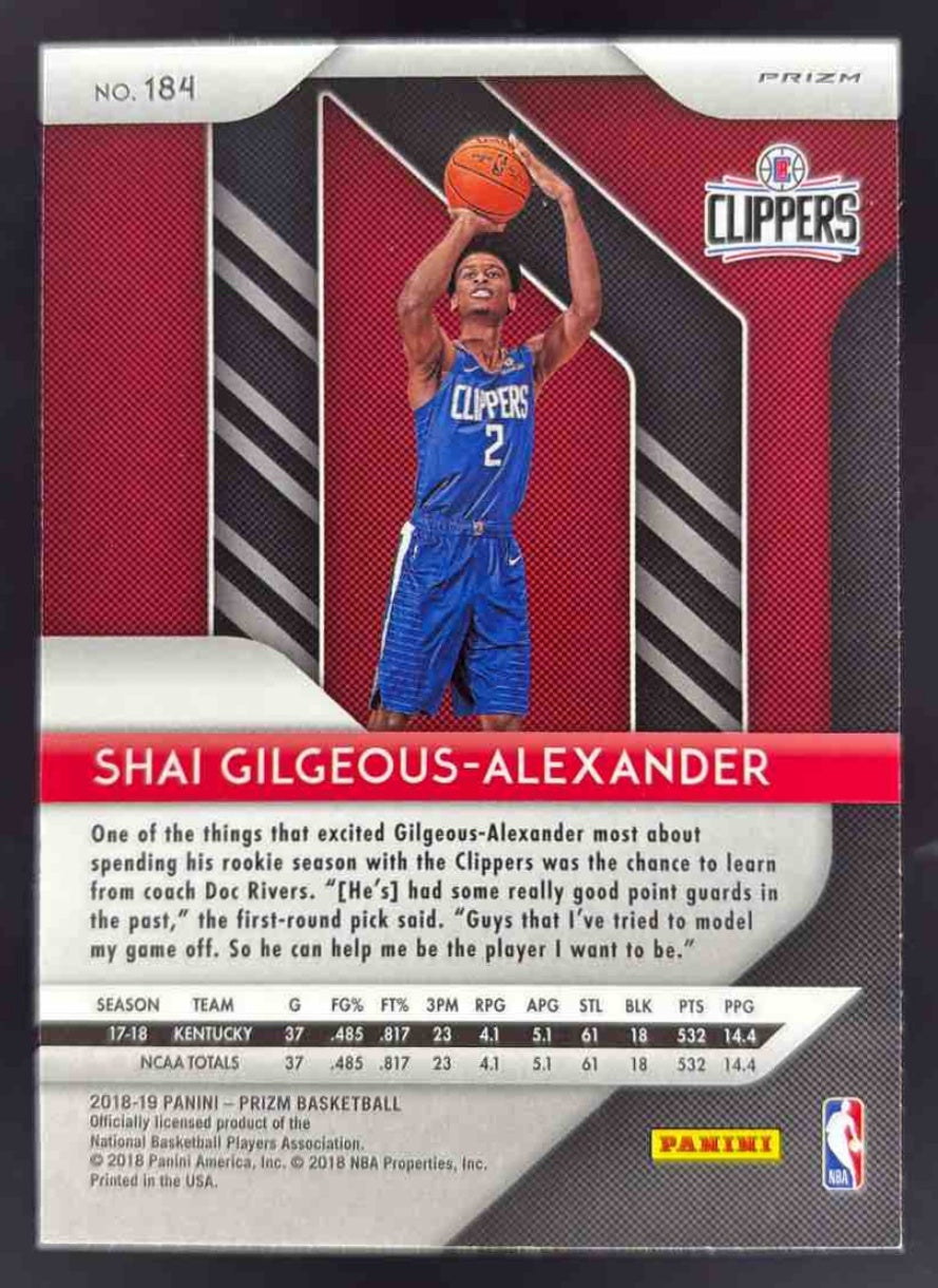2018-19 Panini Prizm Prizms Red White and Blue #184 Shai Gilgeous-Alexander RC