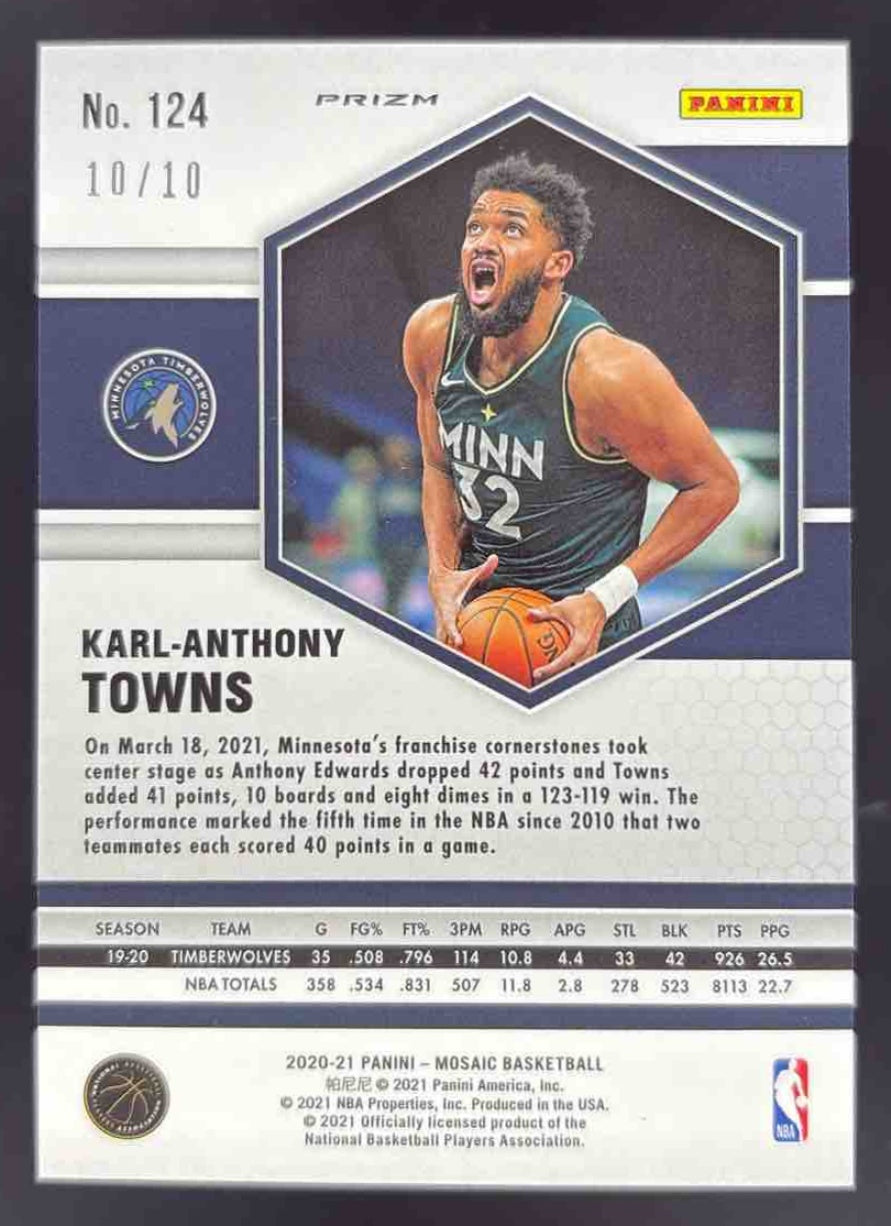 2020-21 Panini Mosaic Mosaic Gold #124 Karl-Anthony Towns /10