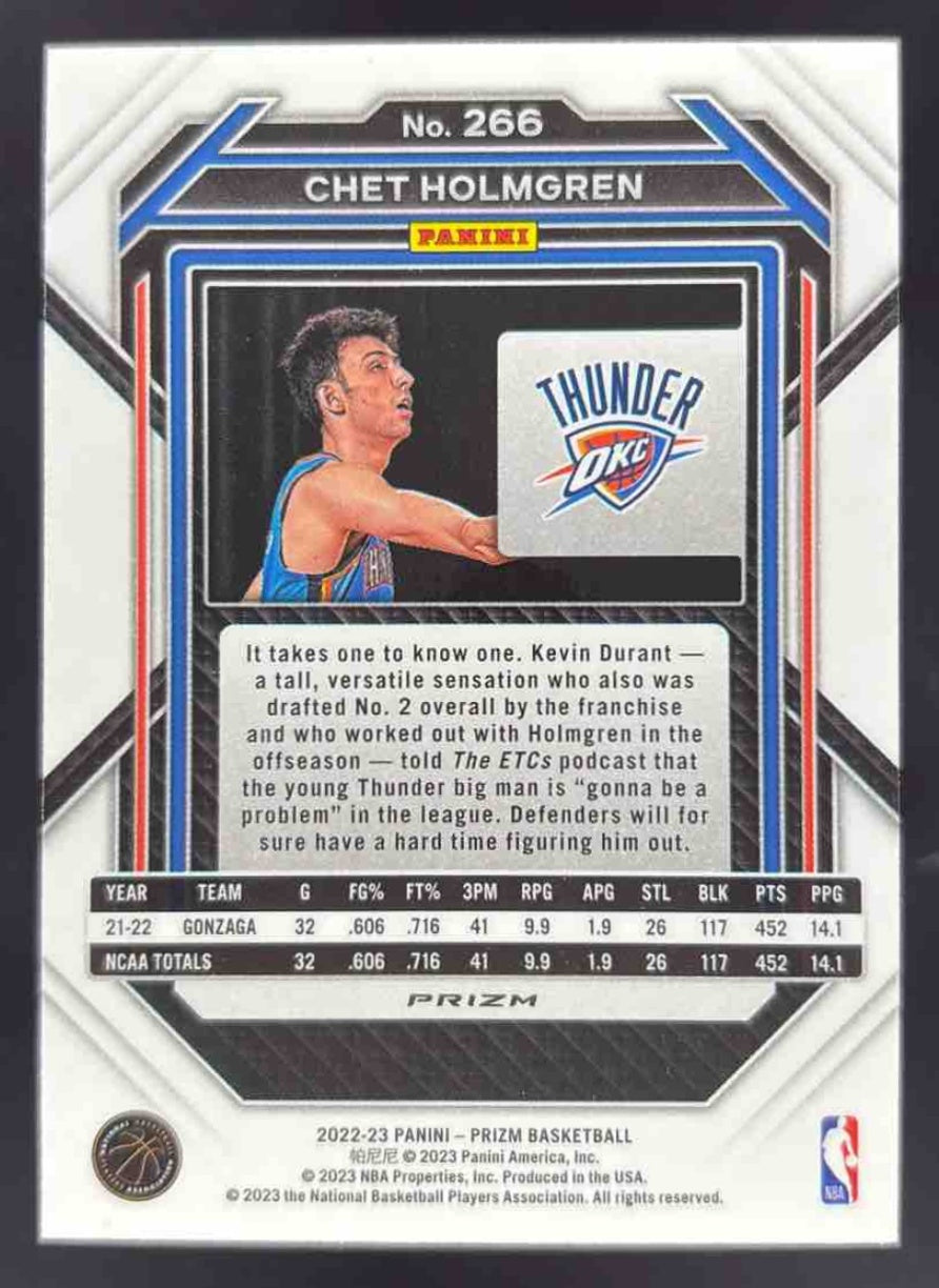 2022-23 Panini Prizm Prizms Silver #266 Chet Holmgren RC