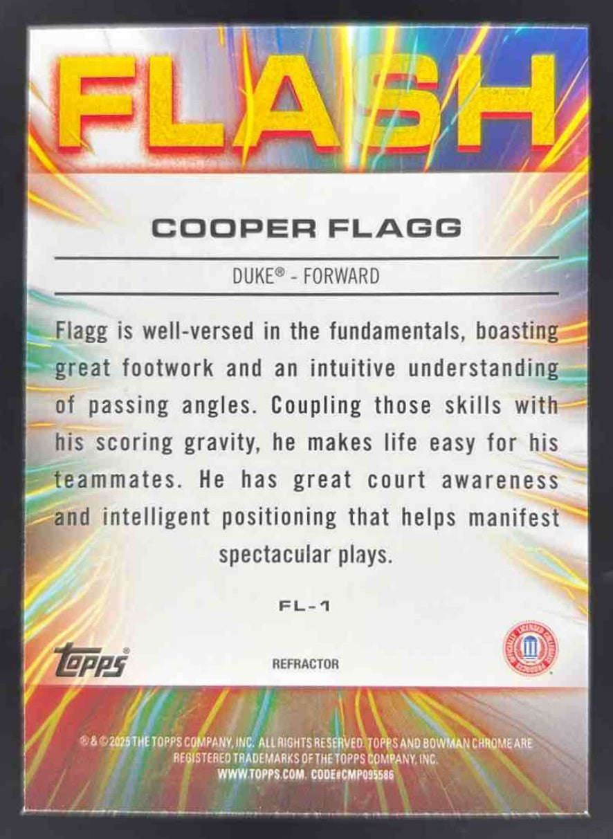 2024-25 Bowman University Chrome Flash Refractor #FL-1 Cooper Flagg