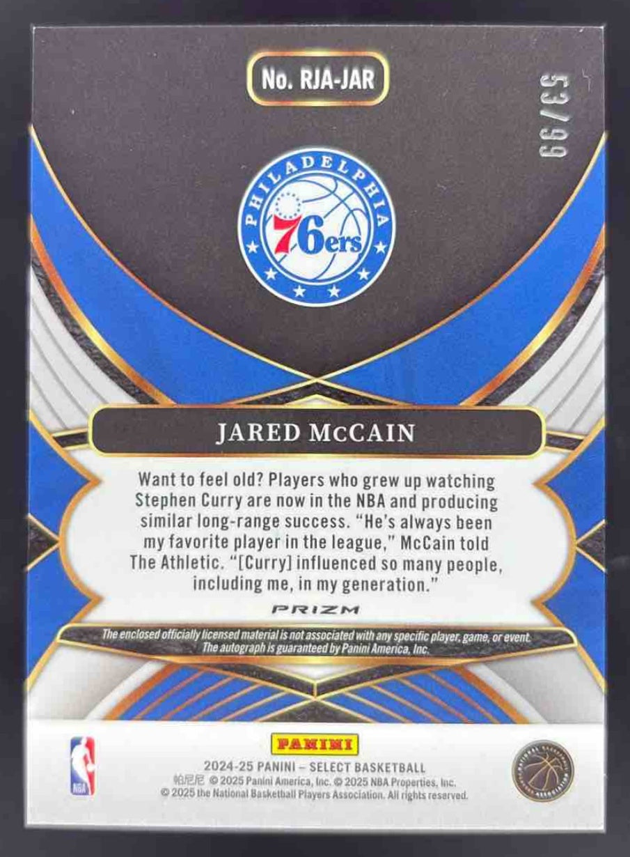 2024-25 Select Rookie Jersey Red Wave Prizm #RJA-JAR Jared McCain RC Auto /99