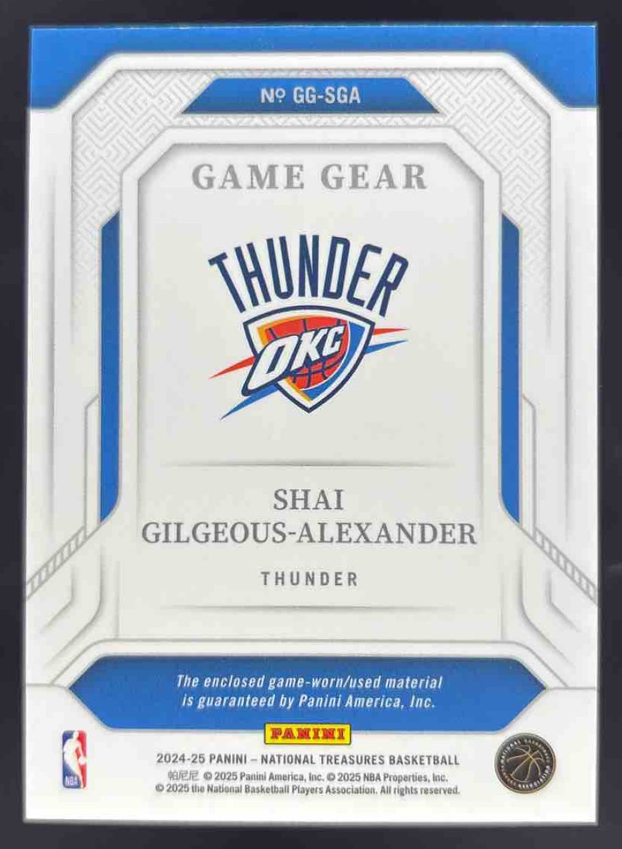 2024-25 Panini National Treasures Game Gear #GG-SGA Shai Gilgeous-Alexander /99
