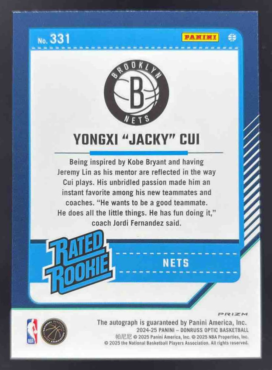 2024-25 Donruss Optic Rookies Signatures Holo #331 Yongxi "Jacky" Cui RC Auto