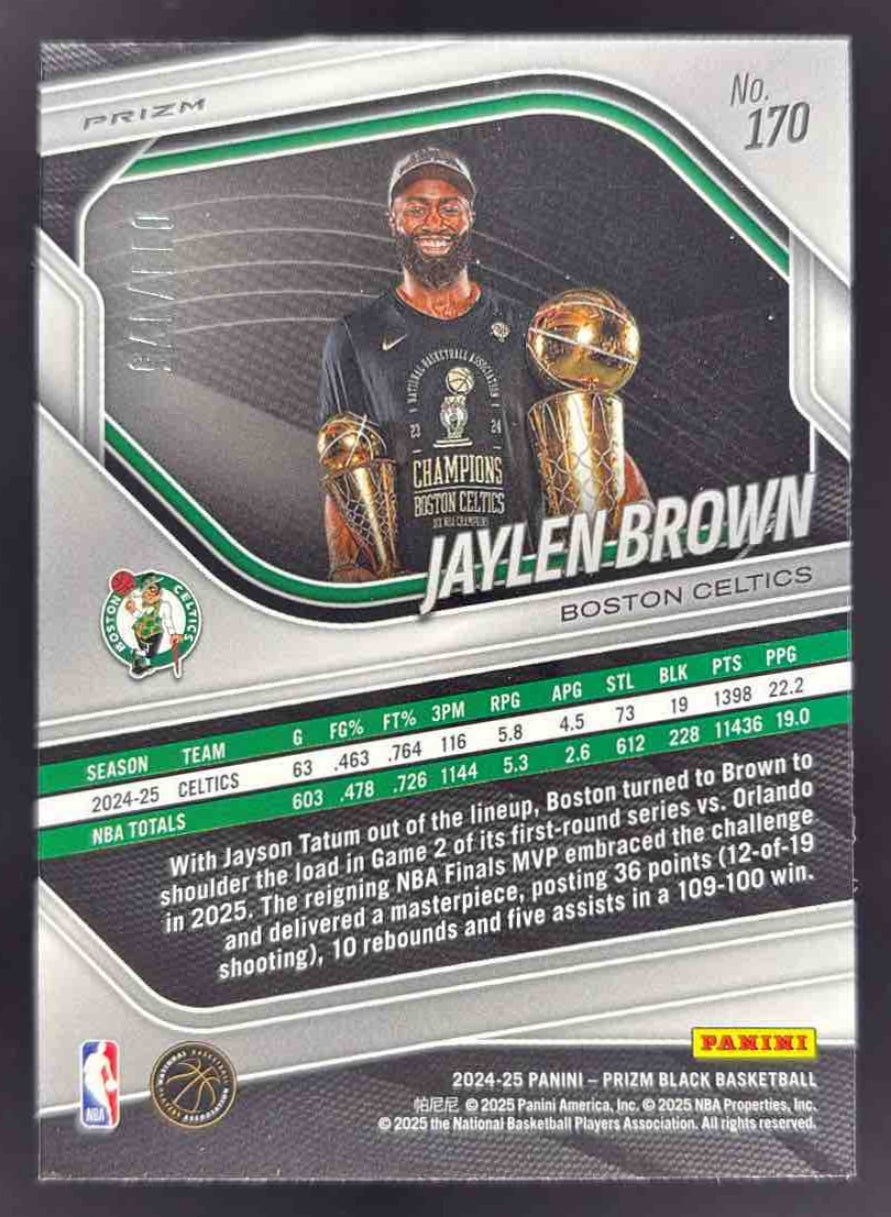 2024-25 Panini Prizm Black White Prizms #170 Jaylen Brown /175