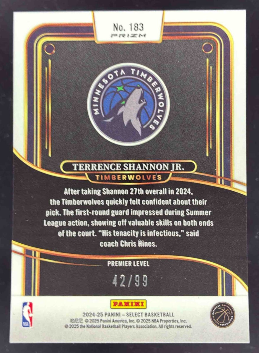 2024-25 Panini Select Premier White Wave Prizm #183 Terrence Shannon Jr. RC /99
