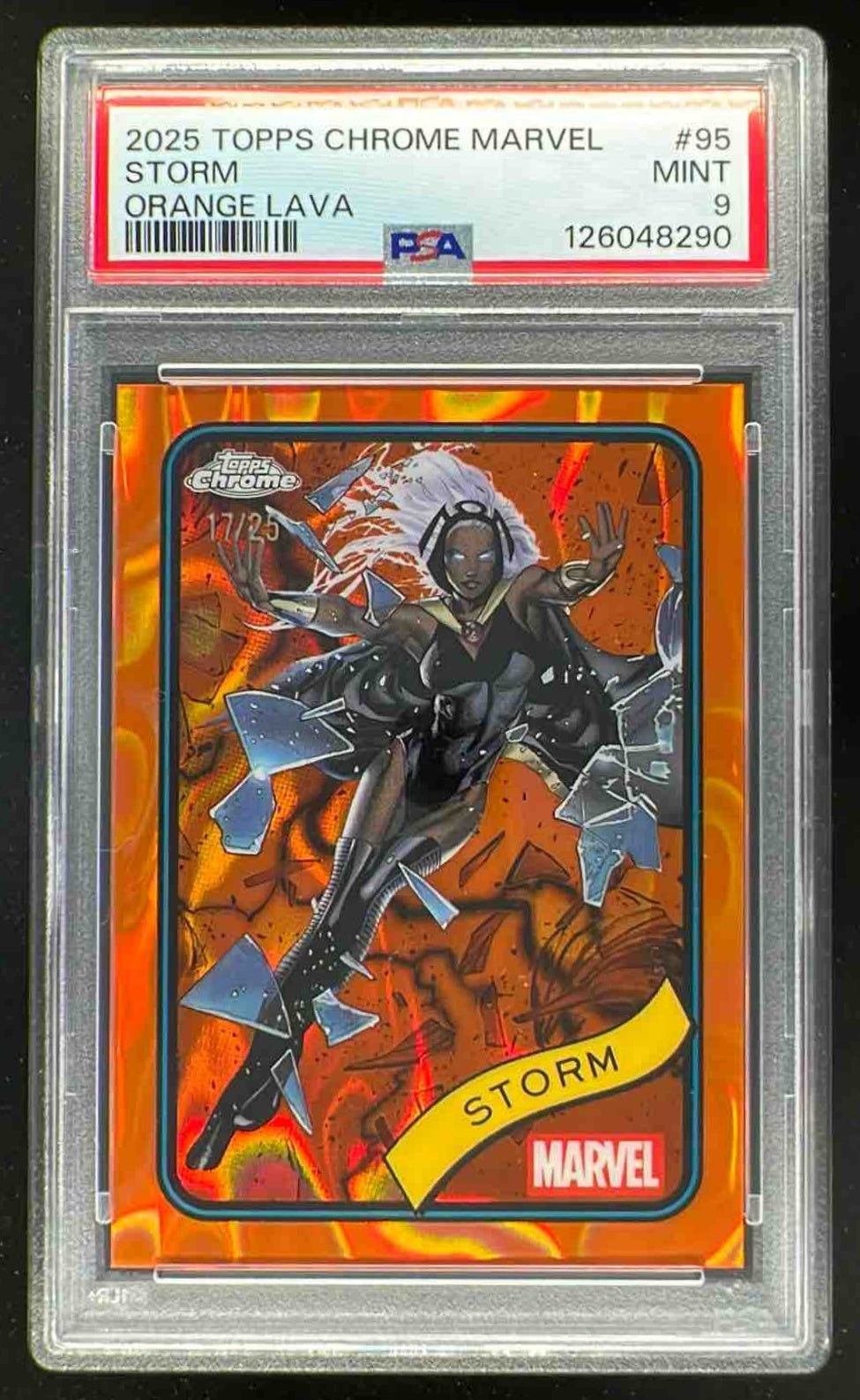2025 Topps Chrome Marvel Orange Lava Refractor #95 Storm /25 PSA 9