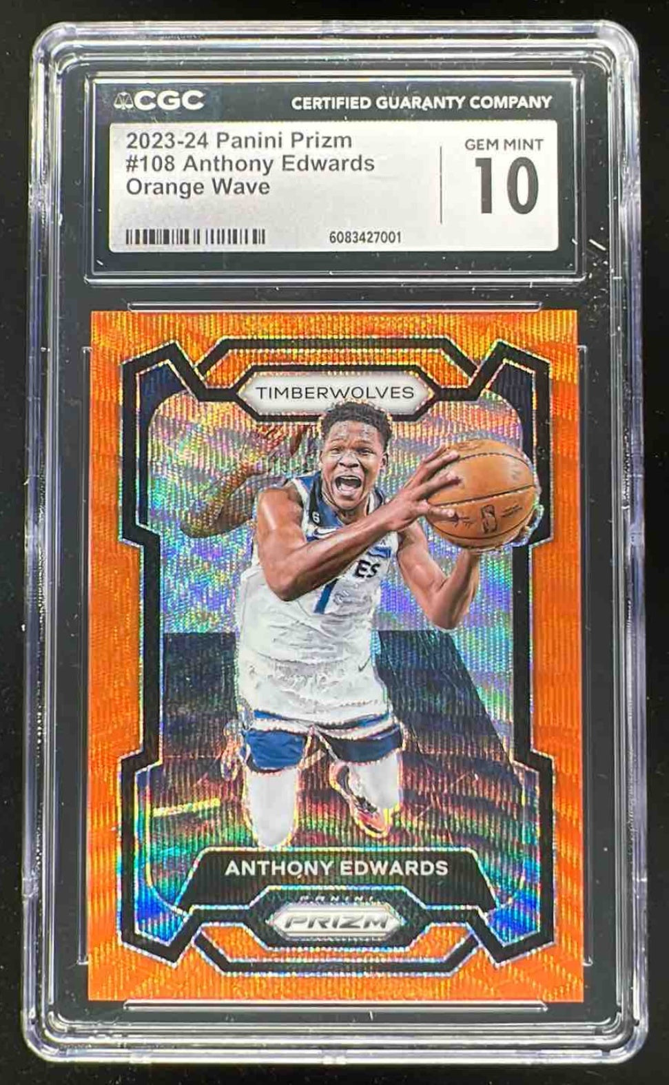 2023-24 Panini Prizm Prizms Orange Wave #108 Anthony Edwards /60 CGC 10