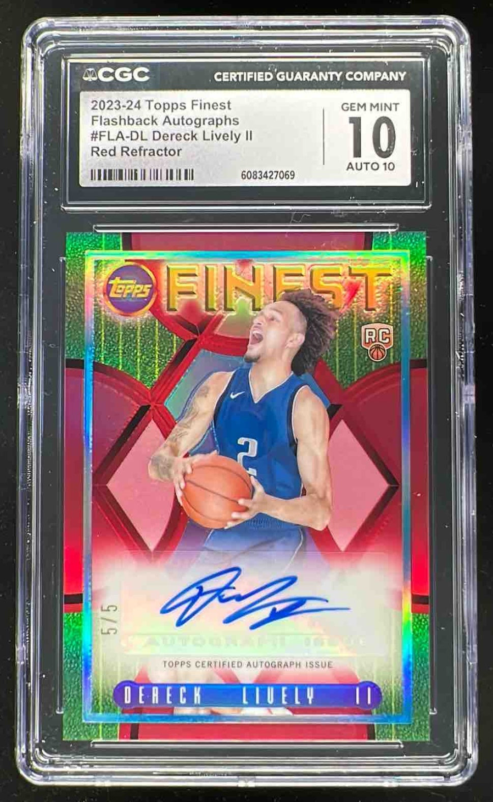 2023-24 Topps Finest Flashback Red Refractors Dereck Lively II RC Auto /5 CGC 10