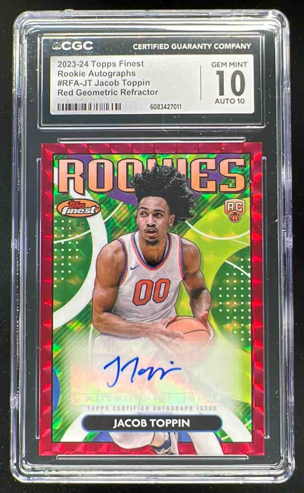 2023-24 Topps Finest Rookie Red Geometric #RFA-JT Jacob Toppin RC Auto /5 CGC 10