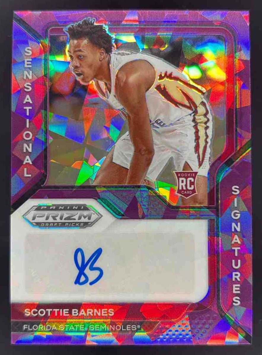 2021-22 Panini Prizm Draft Sensational Purple Ice Scottie Barnes RC Auto /29