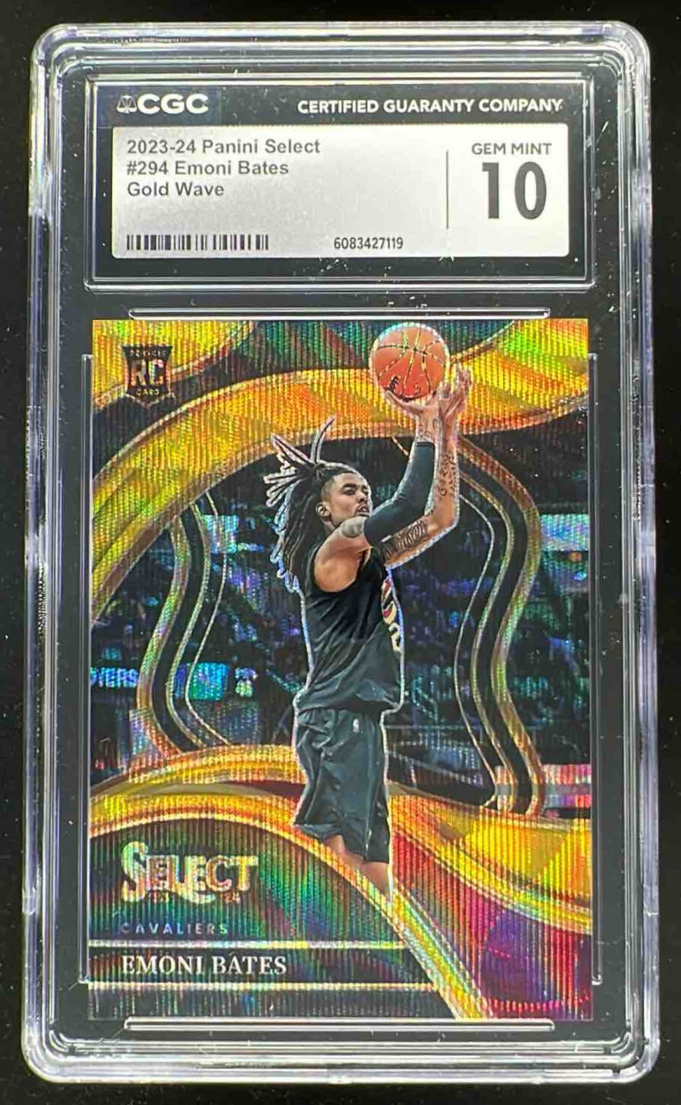 2023-24 Panini Select Gold Wave Prizms #294 Emoni Bates RC Courtside /10 CGC 10