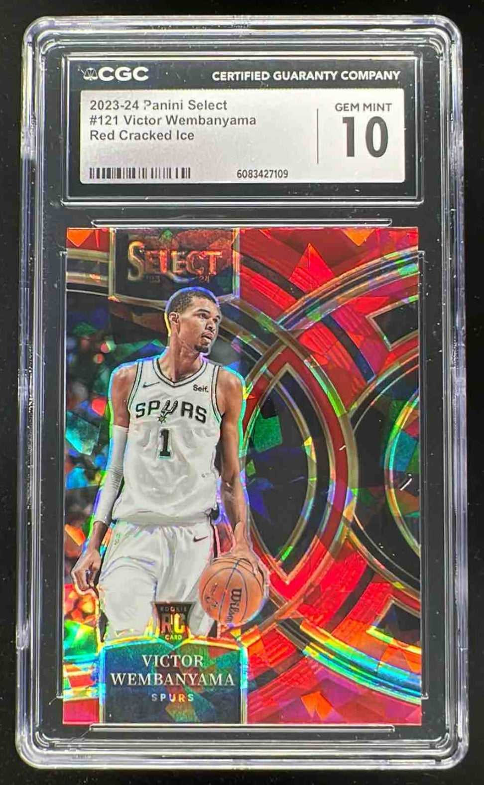 2023-24 Select Red Cracked Ice Prizms #121 Victor Wembanyama RC Premier CGC 10