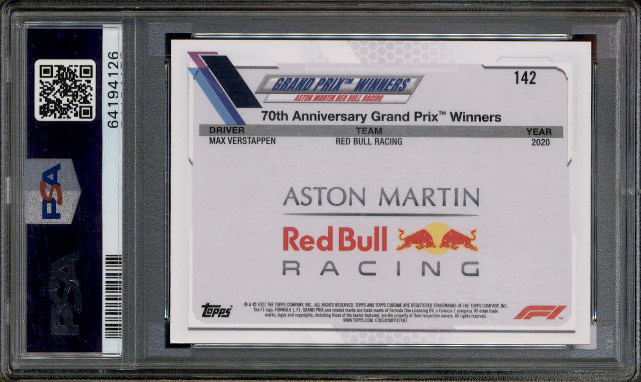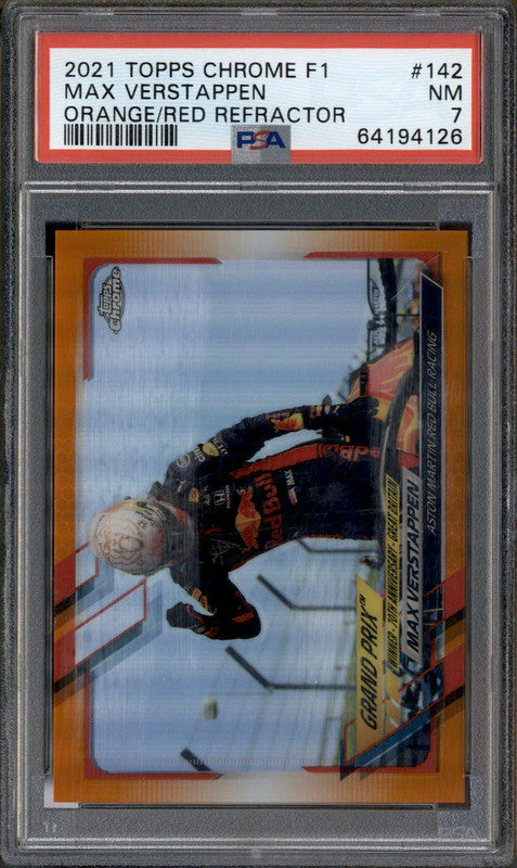 2021 Topps Chrome F1 Orange Red Refractor Max Verstappen PSA 7