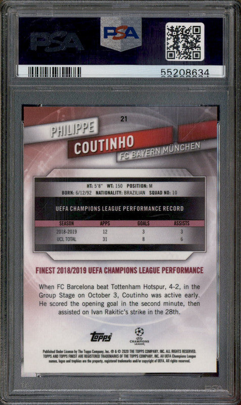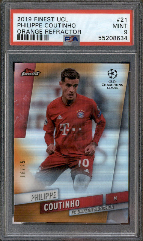2019 Finest UCL Orange Refractor #21 Philippe Coutinho /25 PSA 9