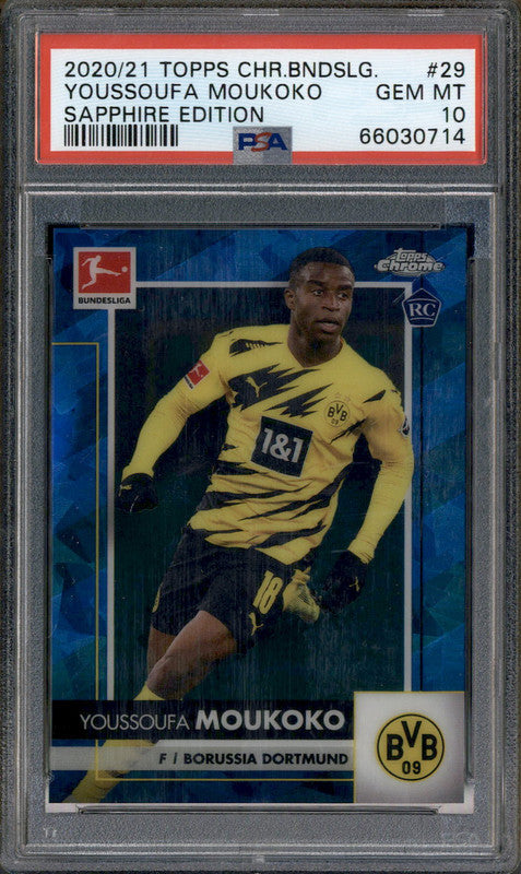 2020 Topps Chrome Bundesliga Sapphire #29 Youssoufa Moukoko RC Rookie PSA 10