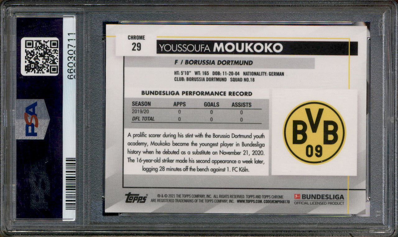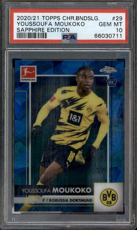 2020 Topps Chrome Bundesliga Sapphire #29 Youssoufa Moukoko RC Rookie PSA 10