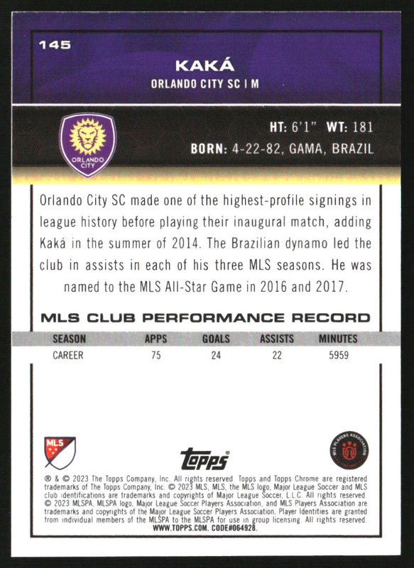 2023 Topps Chrome MLS Orange Refractors #145 Kaka /25