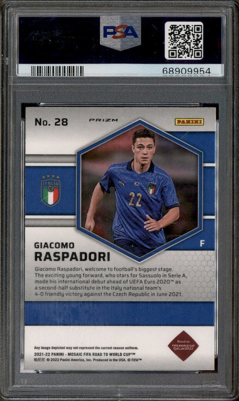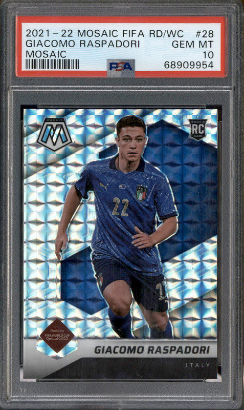 2021 Mosaic Fifa World Cup Mosaic #28 Giacomo Raspadori RC Rookie PSA 10