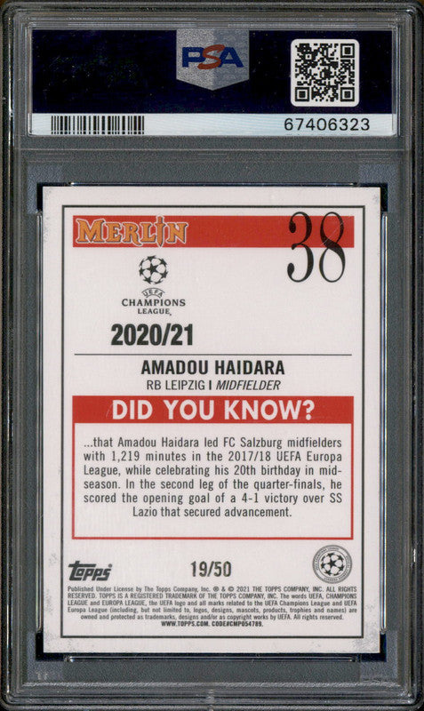 2020 Merlin Chrome UCL Gold Atomic Refractor Amadou Haidara RC /50 PSA 10