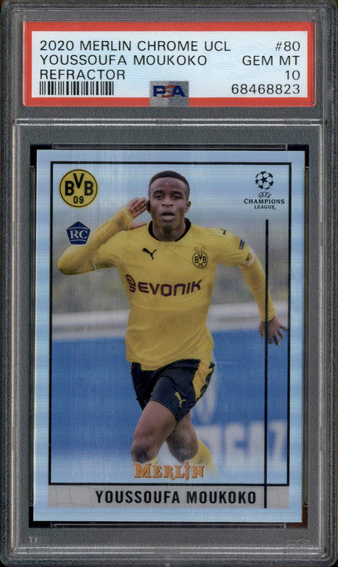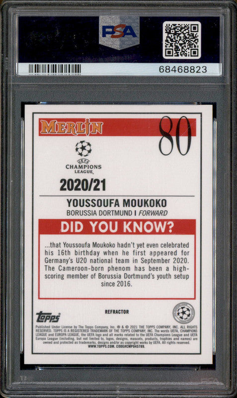 2020 Merlin Chrome UCL Refractor #80 Youssoufa Moukoko RC Rookie PSA 10