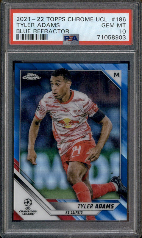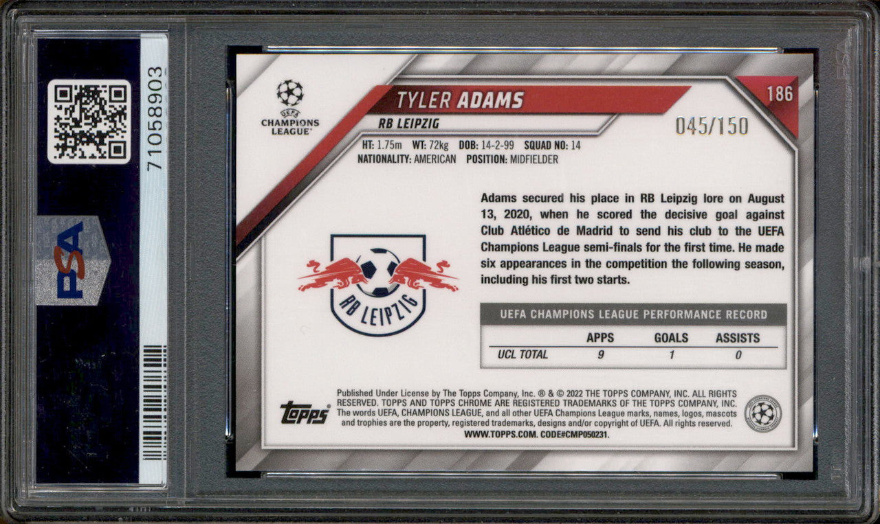 2021 Topps Chrome UCL Blue Refractor #186 Tyler Adams /150 PSA 10