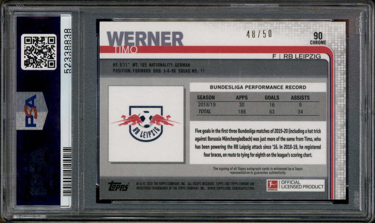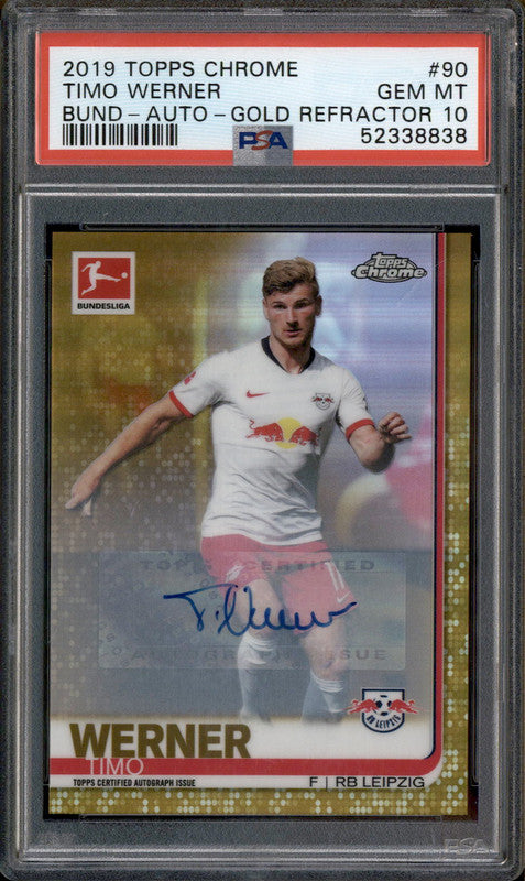 2019 Topps Chrome Auto Gold Refractor #90 Timo Werner /50 PSA 10