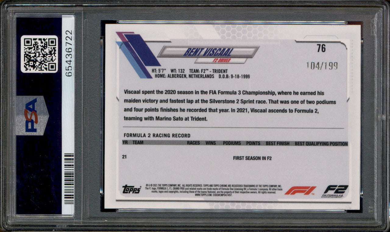 2021 Topps Chrome F1 Purple Checker Flag #76 Bent Viscaal /199 PSA 10