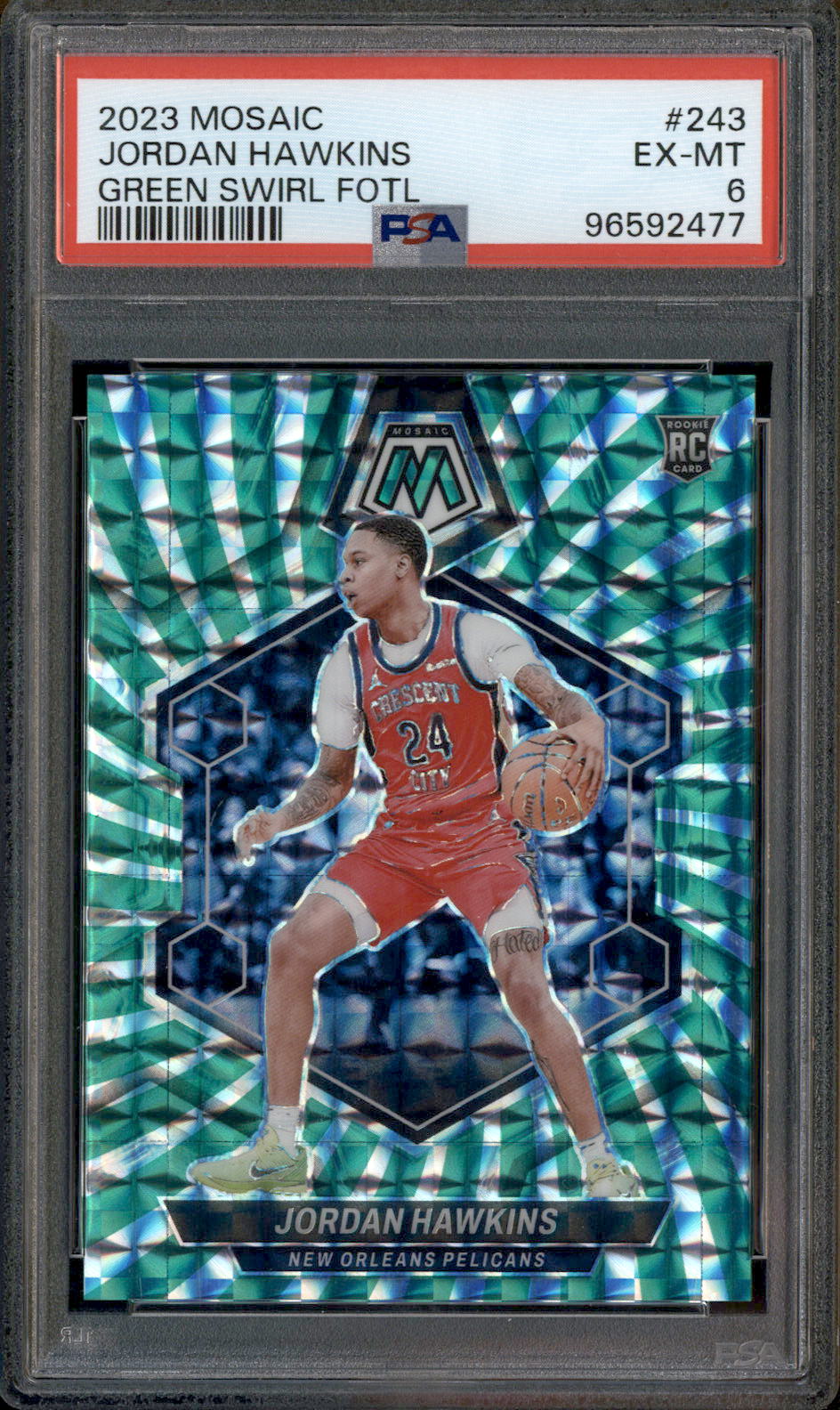 2023 Panini Mosaic Green Swirl FOTL #243 Jordan Hawkins RC Rookie /3 PSA 6