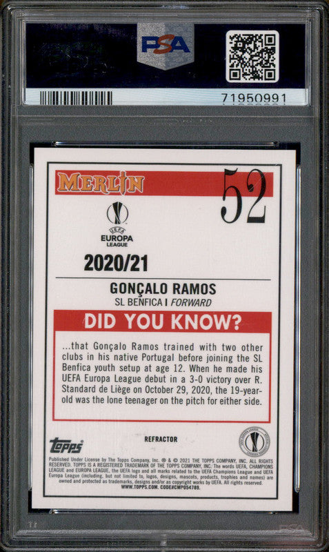2020 Merlin Chrome UCL Refractor #52 Goncalo Ramos RC PSA 9