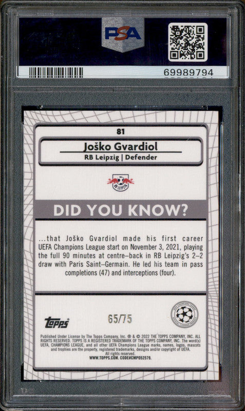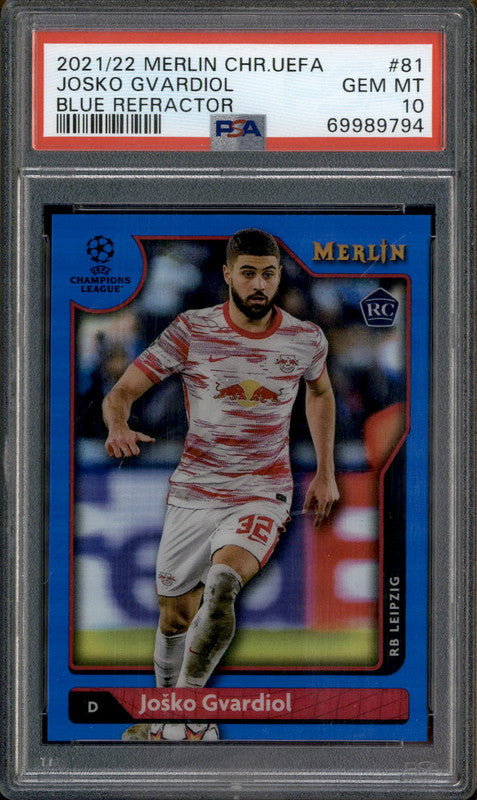 2021 Merlin Chrome UEFA Blue Refractor Josko Gvardiol RC Rookie /75 PSA 10