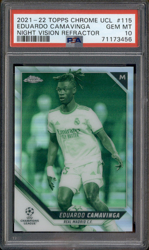 2021-22 Topps Chrome UCL Nigh Vision Refractor Eduardo Camavinga /225 PSA 10