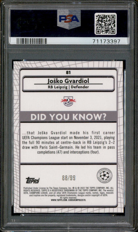 2021 Merlin Chrome UEFA Green Refractor Josko Gvardiol RC Rookie /99 PSA 9