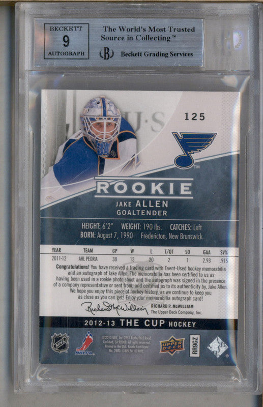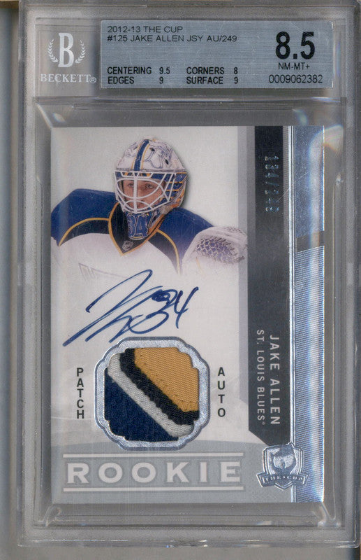 2012-13 The Cup #125 Jake Allen RC Jersey Patch Auto /249 BGS 8.5