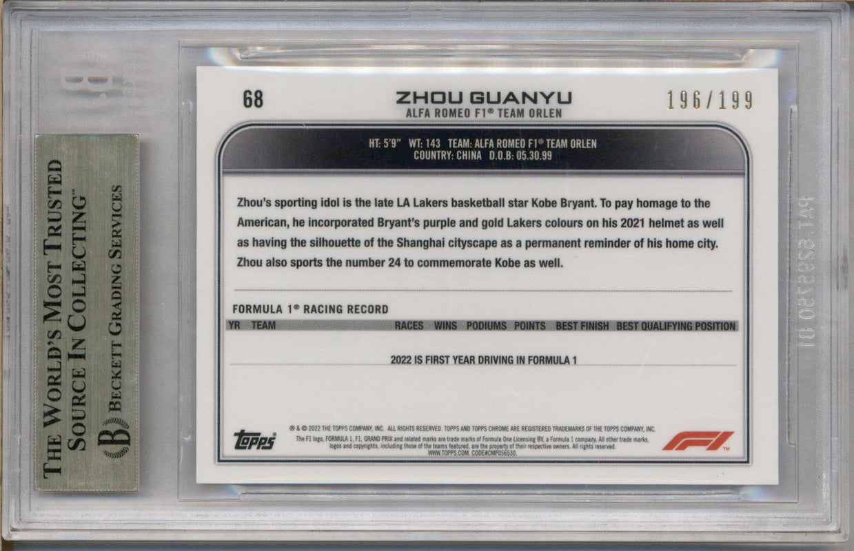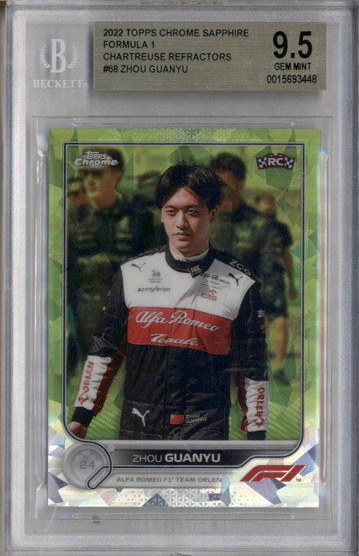 2022 Topps Chrome Sapphire Formula 1 Chartreuse Zhou Guanyu RC /199 BGS 9.5