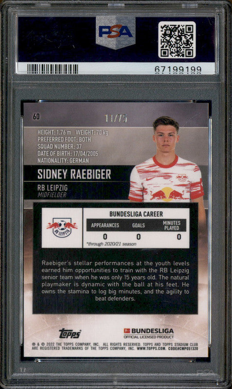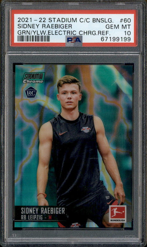 2021 Stadium Club Chrome Green Yellow Electric Sidney Raebiger RC /75 PSA 10